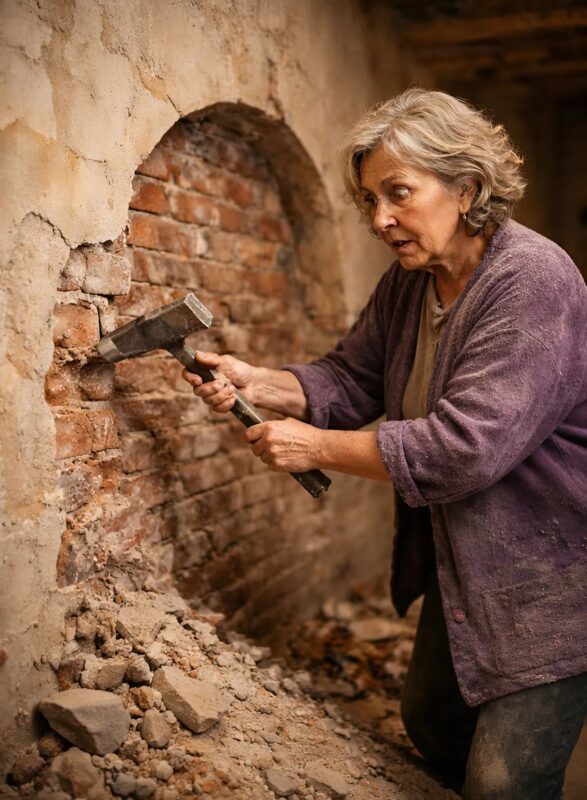 Она решила начать ремонт именно с этого места, будто хотела таким образом бросить вызов прошлому. Сначала вынесла мебель. Затем взяла молоток и начала сбивать старую штукатурку. Стена оказалась необычайно толстой и твёрдой. Каждый удар отдавался болью в руках. Штукатурка отходила медленно. Под ней появился слой кирпича, а за кирпичами — ещё один.