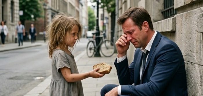 Состоятельный мужчина шёл мимо женщины, просящей милостыню на тротуаре — пока его сын вдруг не остановился, обернулся и не сказал: «Папа… это мама.» В ту ночь, когда всё