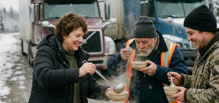 — Мы полностью на мели, нам нечем заплатить — тихо говорили водители грузовиков, застрявшие в снежной буре, избегая её взгляда. Владелица приходящей в упадок придорожной траттории молча подала