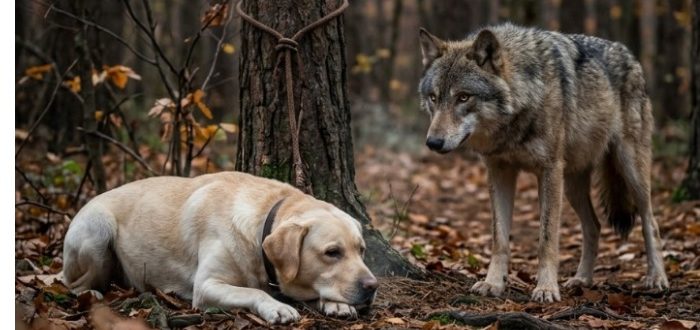 Мужчина привёл своего пса в лес и привязал его к дереву, рассчитывая таким образом избавиться от него. Но никто не мог предсказать, что волк сделает с этим животным.